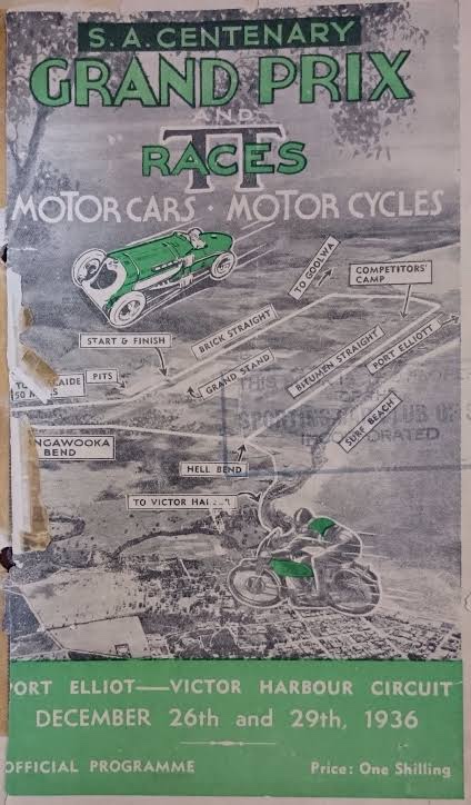 Clearly the author of the South Australian Centenary meeting programme was confused too. Despite the race being held in Victor Harbor, the event was contested, seemingly, on the Port Elliott-Victor Harbour Circuit.