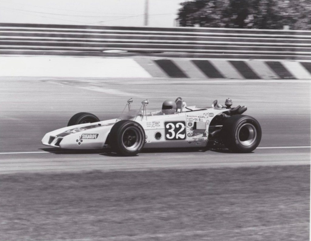 The Offy powered, Arkansas Aviation entered car was involved in a spectacular accident with David Hobbs’ Penske Lola after completing 85 laps of the race won by Al Unser’s Colt 71 Ford. Hobbs engine blew, then Muther, immediately behind him swerved in avoidance, pegged the inside wall, then veered right into Hobbs’ path and the outside wall, taking both of them out in a lucky escape.