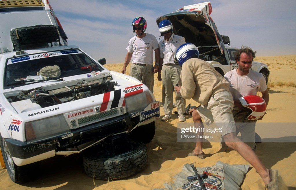 PT’s Lada ‘Poch’ Samara T3 Porsche 3.6 during the 1991 Paris-Dakar, sharing the car with Lemoyne. The pair were seventh, the event won by the Ari Vatanen/Berglund Citroen ZX