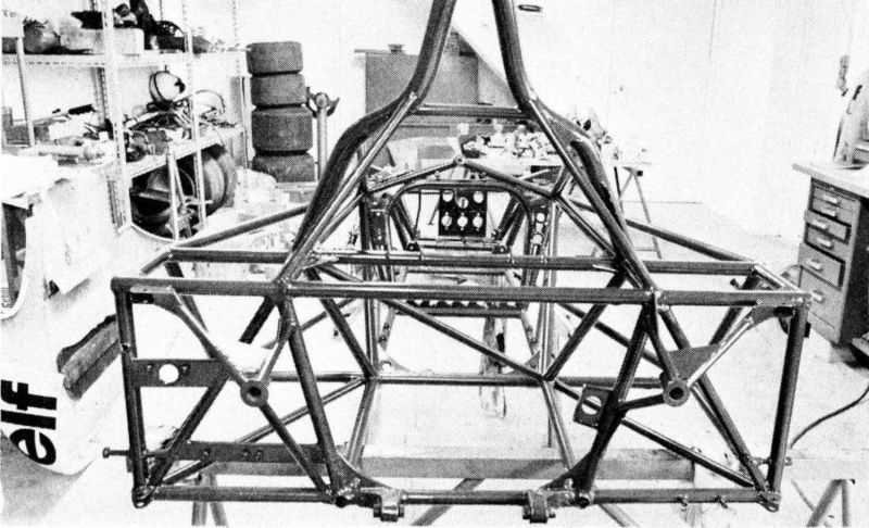 An Elf 2J spaceframe takes shape in Jabouille’s workshop, where folks? (G Gamand Collection)JPJ with the bi-winged Elf 2J, Rome GP 1976. Jabouille perhaps inspired by Frank Matich’s success in a similarly endowed Matich A50 Repco-Holden F5000 machine in 1972-73 (unattributed)