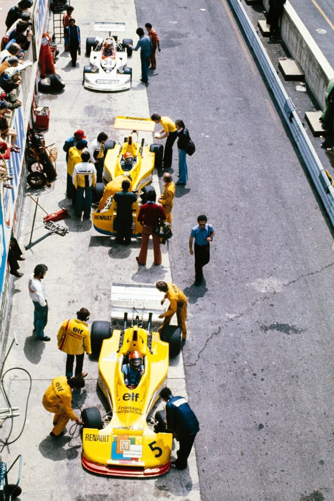 JPJ made the Renault RS01’s race debut at Silverstone in 1977, where the Yellow Teapot retired from the race but not before making a big impression with what would become the new engine paradigm.