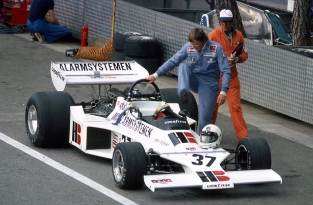 During late 1975 there was a spat between Nunn and HB Bewaking which was resolved by HB taking possession of Ensign 175 chassis MN04 which had been raced by Van Lennep, Wunderink and Amon throughout 1975. Larry Perkins was chosen to drive the car in 1976. The car was prepared from the a base in Bovenkerk, Holland by the Bob and Body Hoogenboom (BOb and ROdy = Boro) with plenty of input and work from Perkins, who was very impressive in the way he went about F1 in DIY fashion! In fact F1 in the manner he had run his F3 program, necessity being the mother of invention.