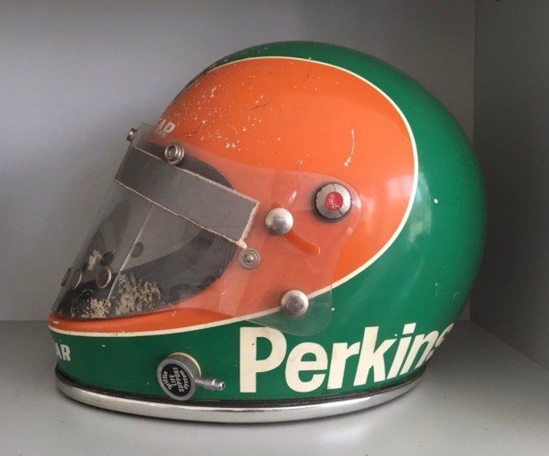 Yours for $A10,000, LP’s Griffin helmet from his Brabham Alfa and BRM days (Perkins Engineering)