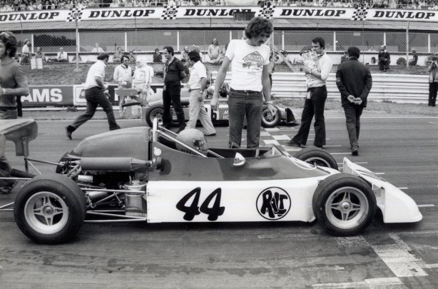 Ralt Racing Equipe in 1975, Perkins’ RT1 with Ron Tauranac and Greg Siddle off to the right (G Siddle)