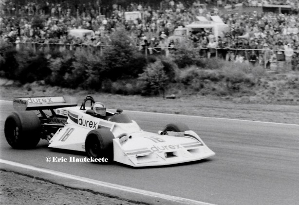 Off to the Dutch team’s home race at Zandvoort, Larry was Q19 of 26. Jenkinson commented upon Larry’s car control “…There was a lot of pressing on, even from those near the back and both Merzario and Perkins had spins leaving the Tarzan hairpin, the Australian doing a textbook job of declutching at precisely the right moment to avoid stalling the engine, keeping his sense of direction and driving off as soon as the nose swung the full 360 degrees and was pointing the right way up the course.”