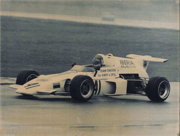Keen to progress to F1 the wealthy Rikky financed Mo Nunn’s venture into F1. Dave Baldwin joined the team to work on the F3 cars while Morris designed the Grand Prix Ensign 173 which raced throughout 1973. Rikky’s best was thirteenth in the British GP at Silverstone. In 1974 von Opel decamped to Brabham early in the season after unhappiness with the team’s progress and was replaced by Vern Schuppan, Teddy Yip funded the drive, his best in the N174 (a revamped N173) was fifteenth in the Belgian GP at Zolder. Mike Wilds drove the car late in the season.