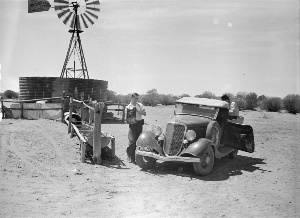 The ute is singing for its supper, doing a meat delivery in country Western Australia in 1937.