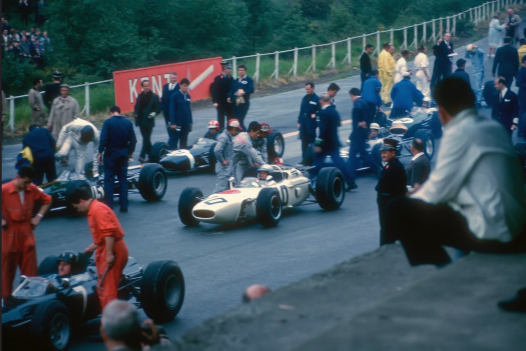 I just love pit or startline just-before-the-off shots. You can feel the tension, excitement and driver’s surge of adrenalin just before they pop their butts into the cockpits of their chariots. Here it’s the Belgian Grand Prix, Spa 1965.