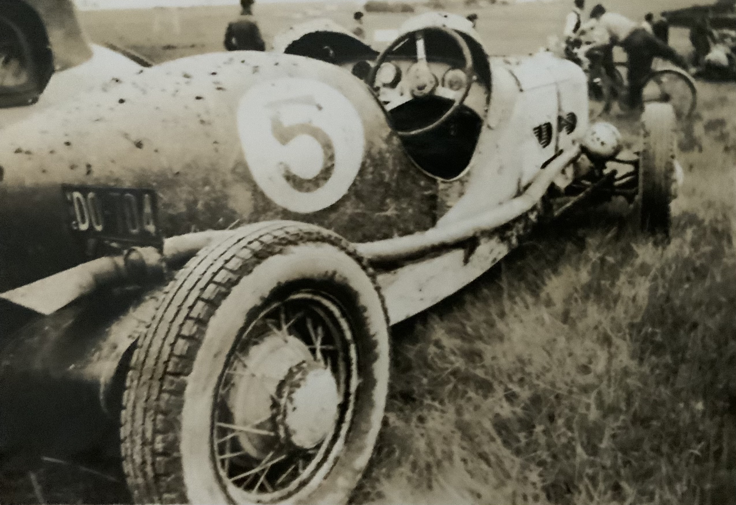 As noted above, the car’s last pre-war meeting was at Wirlinga in 1940. Bob King has this photograph in his collection, the caption on the back lists the racer as Bill Sinclair and the place, Oakleigh in 1942. I can find no Trove reference to this meeting at what is now a southern suburb of Melbourne. It appears as though the car is running the same number/roundel combination from Wirlinga, quite probably untouched. If anybody has information about the event do get in touch.
