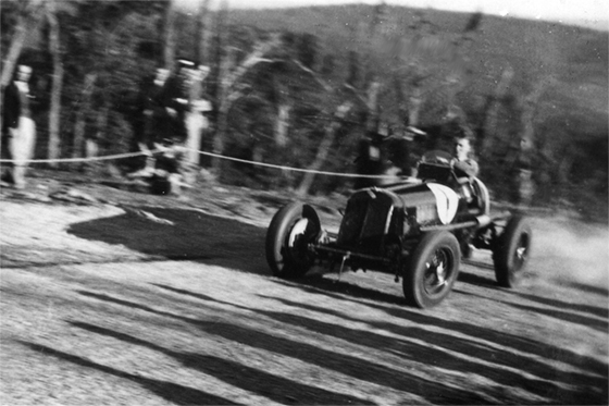 (B King Collection)Blurry and ‘Hatless’ Whitehead during the Australian Hillclimb Championship meeting at Rob Roy in June 1938. He did FTD and set the course record at 31.46 seconds on the still unsealed course which opened a year earlier (L Sims Collection)