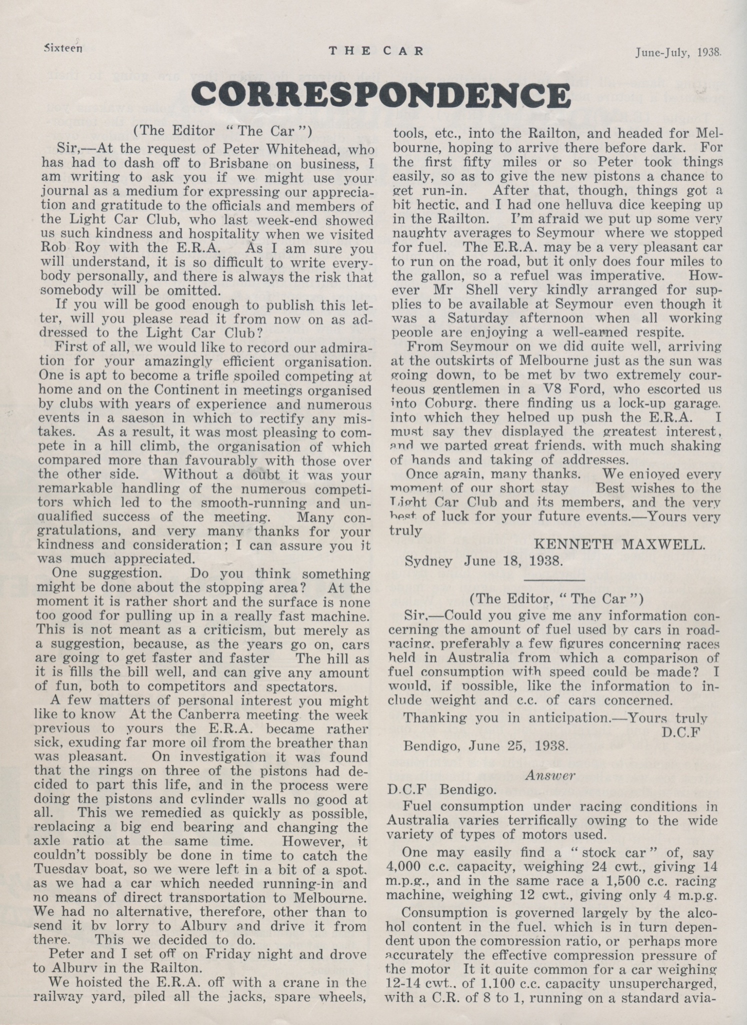 As you will appreciate from the articles, Whitehead was in Australia long enough, and travelled broadly enough, for his views to be fully formed on the state of motorsport play at that time.