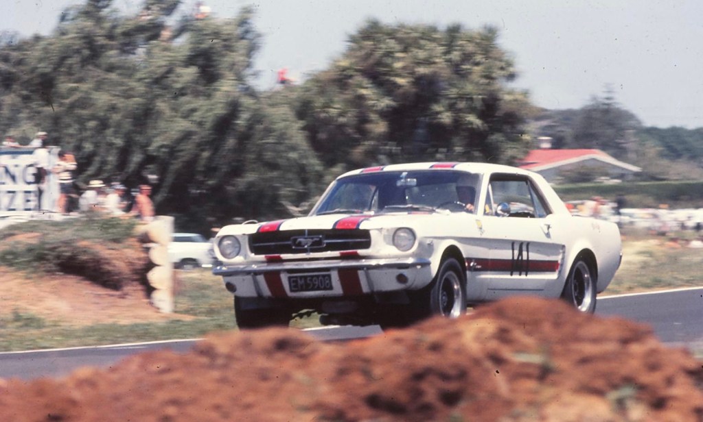 Frank Bryan’s Mustang from, perhaps, Robert Stewart’s Cooper S at Cabbage Tree Corner during the same meeting.