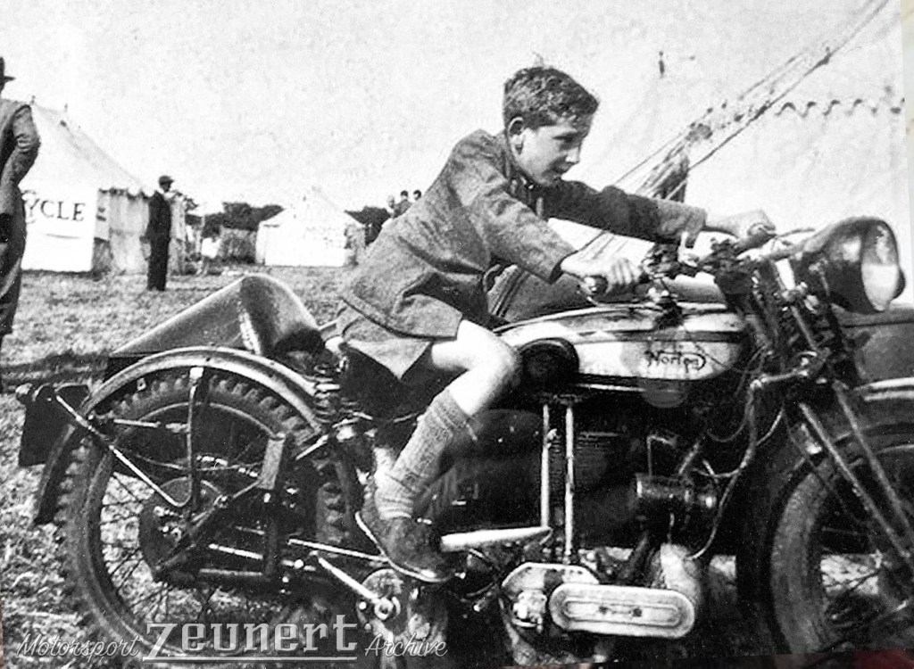 Reg Hunt dreaming about future conquests on one of his parents Nortons, aged nine, in the early 1930s in the UK, and living the dream at Albert Park in 1956 aboard his Maserati 250F below.