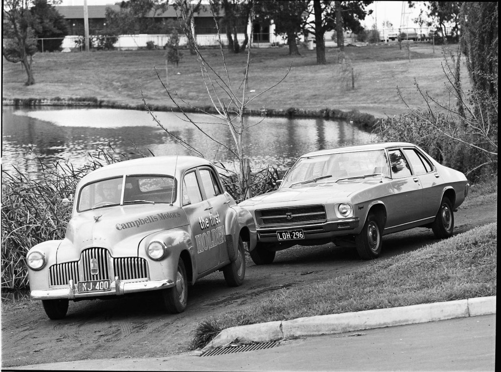 The great Ian Smith is sharing his back-catalogue of photographs in great dollops via Facebook. I enjoyed this series of shots taken in Reservoir, suburban Melbourne during a compare and contrast Wheels road-test between the then new Holden Kingswood HQ, and the original 1948 Holden 48-215 circa 1972.