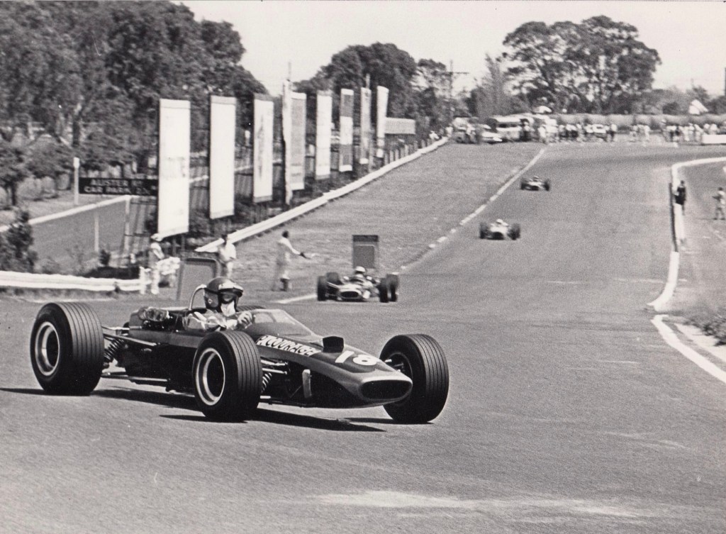 “In Thursday practice Matich took out a bus stop doing 160mph on the Murder Mile, his best time had been 2:05.5, fifth fastest compared with the winner Graeme Lawrence, Ferrari 246T on pole at 1:57.8. Kevin Bartlett, Mildren Alfa Romeo T33 2.5 V8, did 1:58.6 and Max Stewart, Mildren Waggott TC-4V 2-litre, 1:59.6.” Lawrence won from John MacDonald’s Brabham BT10/23C Ford FVA and Albert Poon’s similarly powered Brabham BT30.