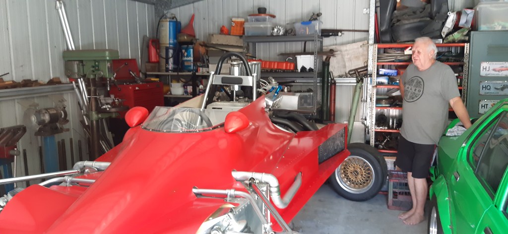Light Car Club stalwart Alex Hay with Maurie Quincey, nine times Australian TT champion and four times Isle of Man competitor on motorcycles before success as a Honda dealer and late career Formula 2 racer in a ‘relatively safe’ Elfin 600 Lotus-Ford.