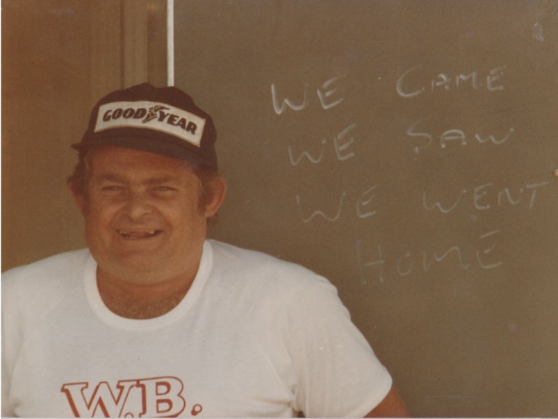 “We had a flag post right beside us and had been chatting with one of the flaggies who was most impressed that we were keen enough, or stupid enough to drive all night from Wollongong. So he said he had to go and clean up the mess and would we like a couple of souvenirs? He brought up a couple of bits of steel, one looked like a huge main-bearing cap and plonked them on top of the fencepost to cool off. About an hour later a young kid who looked a lot like the EH driver came along and demanded his bits back. So we had a quick chat with a young DJ!”