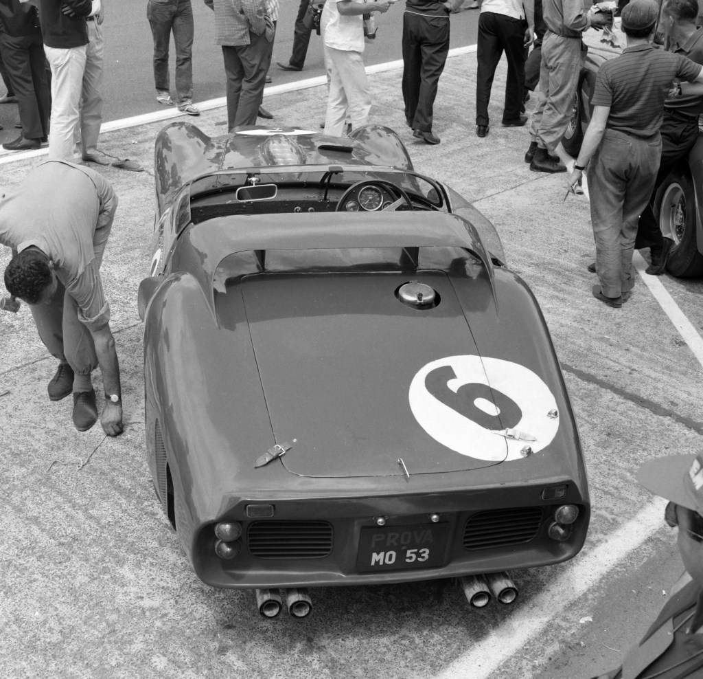 #0780 was then returned to the factory and fitted with a TRI/61-style high rear body incorporating a Kamm tail, the front was unchanged. In this form it was used as an aerodynamic test-bed by Carlo Chiti and Giotto Bizzarini to develop the definitive ’61 TRI body.