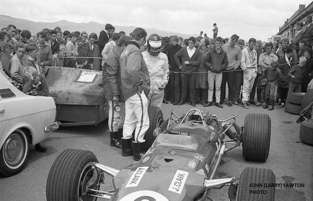Jim Clark about to go out and win the AGP at Sandown. The official margin between Clark’s Lotus 49 and Chris Amon’s Ferrari 246T is one-tenth/sec, but it was closer than that!