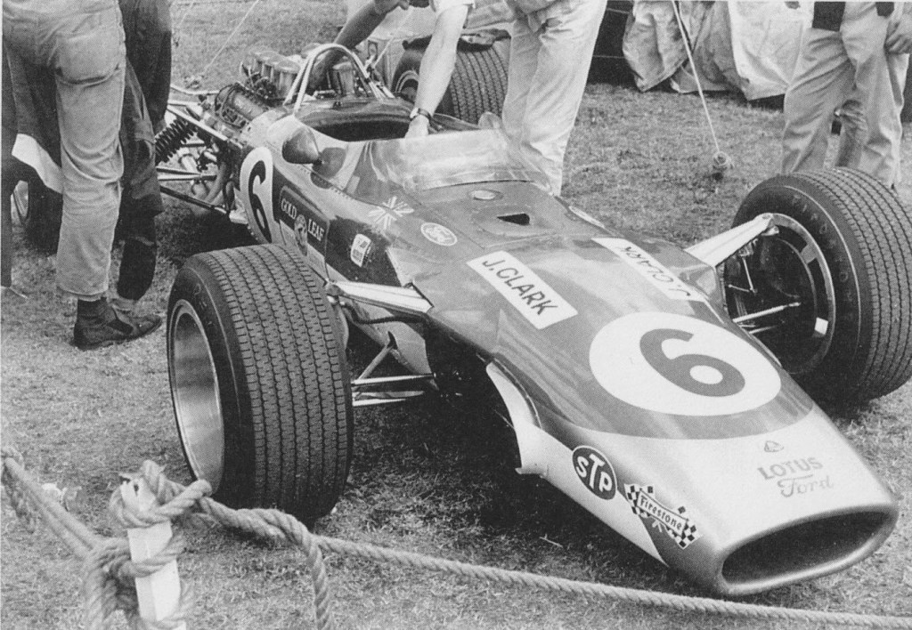 “South Africa was Jim Clark’s last GP win in the green and yellow of Team Lotus. The first race for Lotus in GLTL colours was at Wigram, the first championship GP, the Spanish GP at , a race won by Graham Hill’s Lotus 49 Ford…another GP that got away from Chris Amon, whose Ferrari 312 dominated practice and led most of the race.”