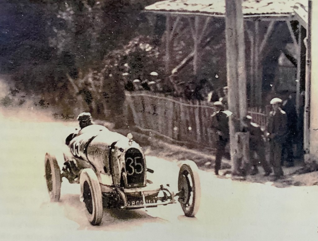 Harold Cooper aboard #1004 at La Turbie Hillclimb in 1925. Hal did four ‘climbs: three venues near Nice including this one, and another in Monaco, before the car was shipped from Le Havre to Melbourne. Quite why this slipper-body was removed back at Ballot HQ at Boulevard Brune for the ‘Indy’ body before shipment to Australia is anybody’s guess. The body above is different to the form in which the car emerged Harkness’ workshop after Alan Cooper’s Maroubra accident.
