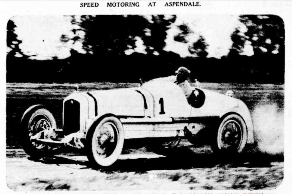 “Thrilling motor-racing was witnessed at the Aspendale Speedway (Melbourne) on Saturday afternoon. The best display of driving was that given by Harold Cooper, who is shown here negotiating a corner at speed in his eight-cylinder Ballot car. He defeated Albert Edwards who drove a front-wheel-drive supercharged Alvis.”