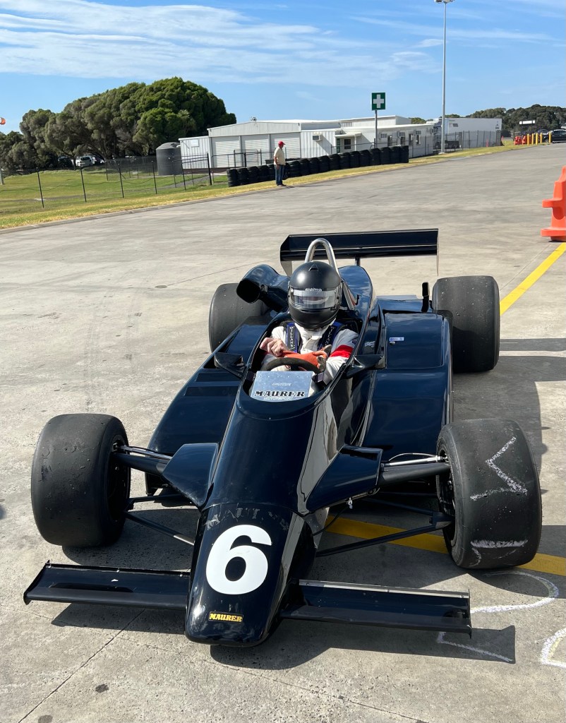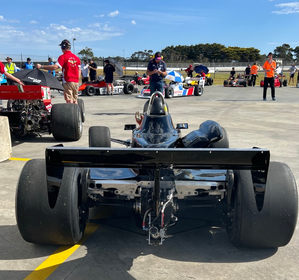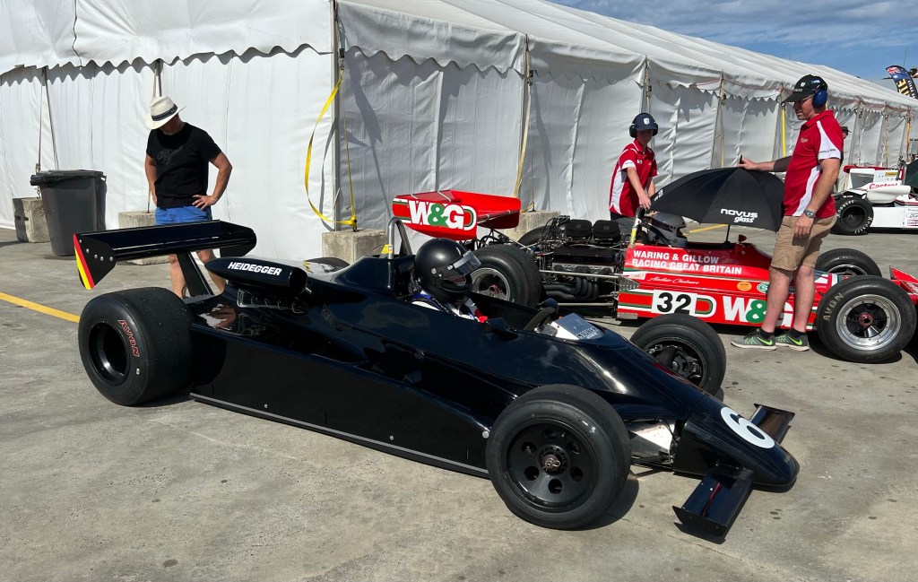 Dixon, a successful Melbourne motor dealer and enthusiast reintroduced the car to VSCC events. Here Lance is taking then Prime Minister of Australia, Malcolm Fraser – a very tall bloke for a polly – for some quick laps in the car at a Sandown meeting in 1977.