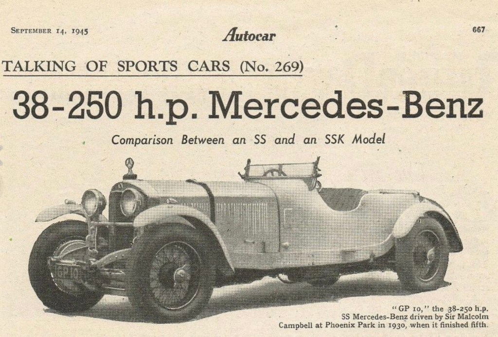 Hailed by its makers as “an ideal high performance car for sporting owner drivers”, the SS Mercedes was claimed to be the fastest sports car in the world. Tested by Motor in 1931 a fully-equipped 7.1-litre Mercedes SS 38/250, not yet fully run in, clocked over 103 mph at Brooklands despite a slight head wind.