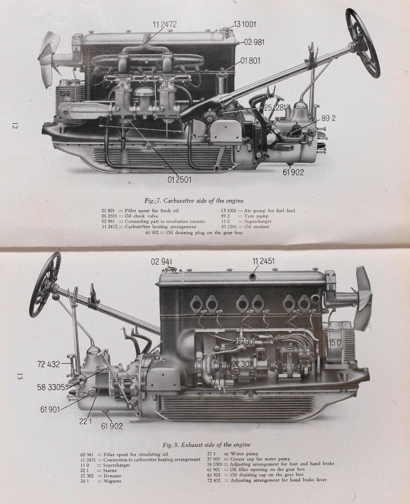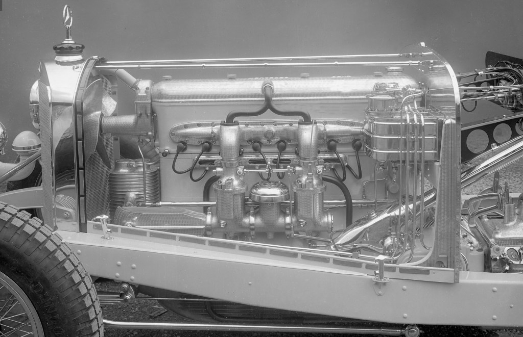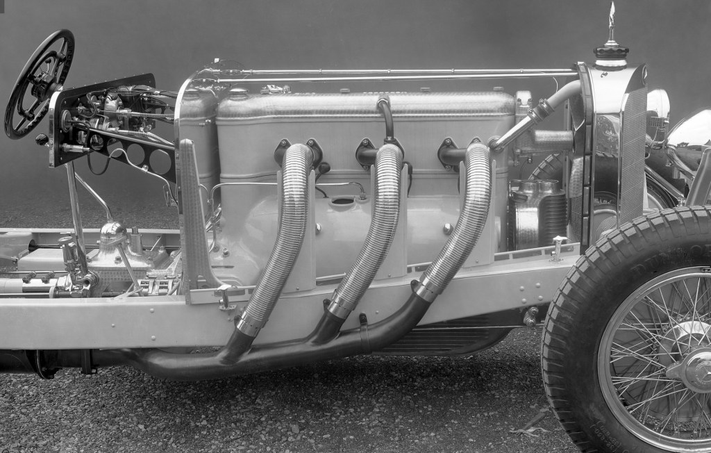 The Mercedes M06 7065cc engine was a long-stroke – 100mm bore, 150mm stroke – SOHC, two-valve, 225bhp @ 3300rpm straight six, fitted with twin-plug ignition: one plug was fired by the magneto and one by the battery.