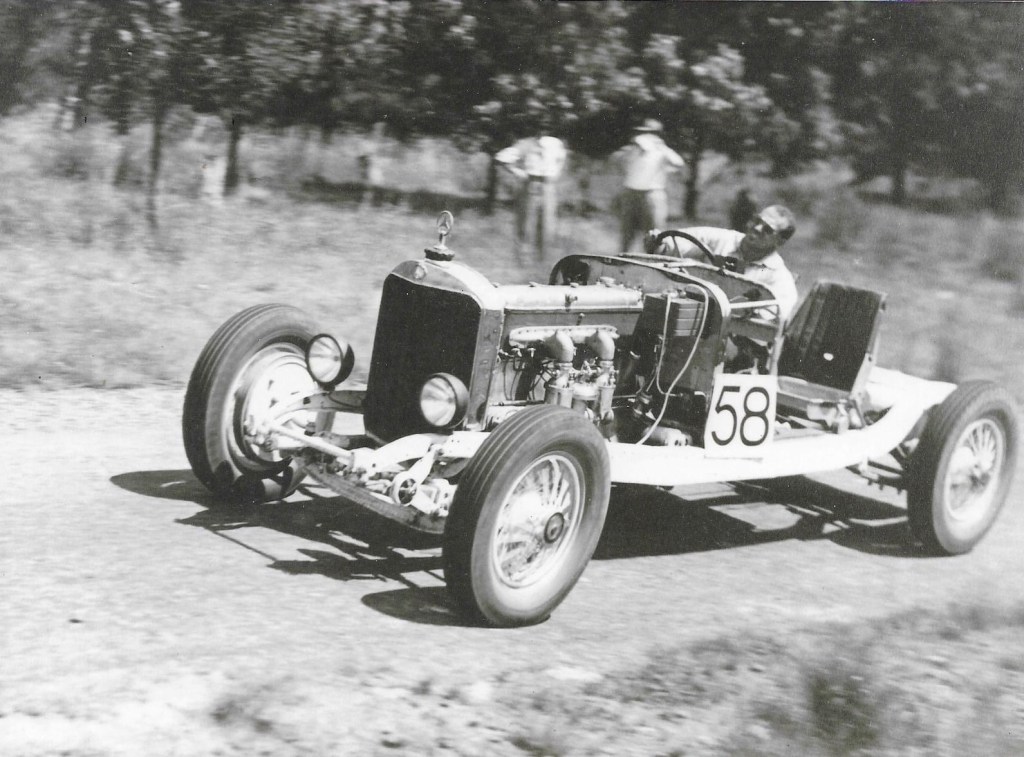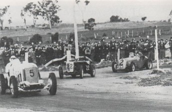 By September 1946 Nutt had the car ready to test at his Whiteman Street, South Melbourne premises. Lex first ran it in unbodied form at Rob Roy that December (above) where he won the Vintage class.