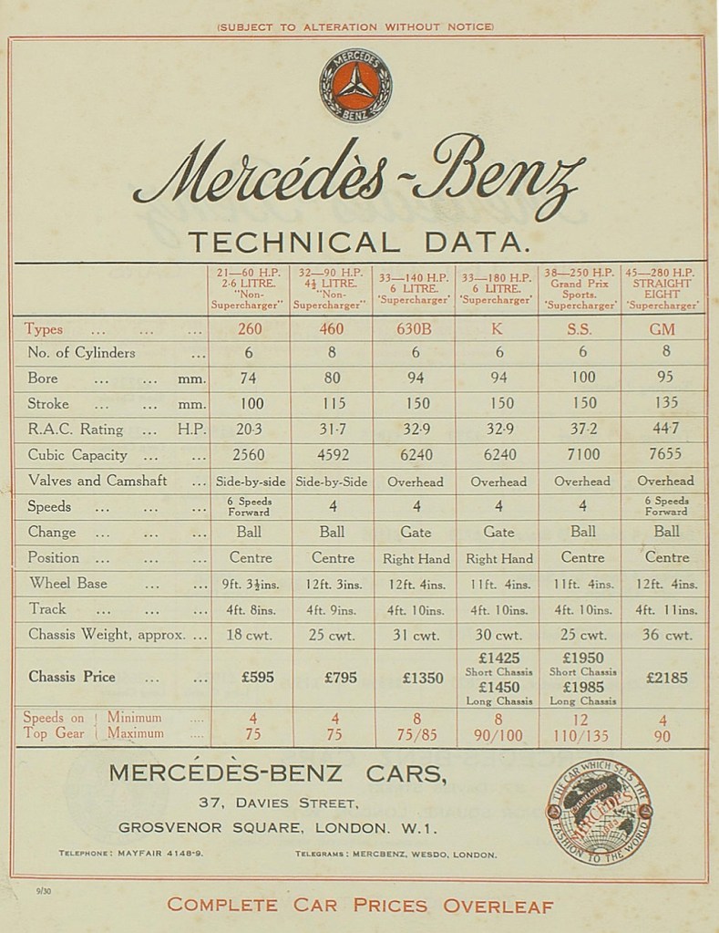 Written in English, but printed in Germany in March 1930, it comprised 20 pages, Bonhams’ generosity did not extend, unsurprising, to reproduction of it in full! Many thanks to them for including the technical specifications page online.