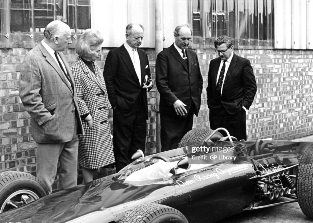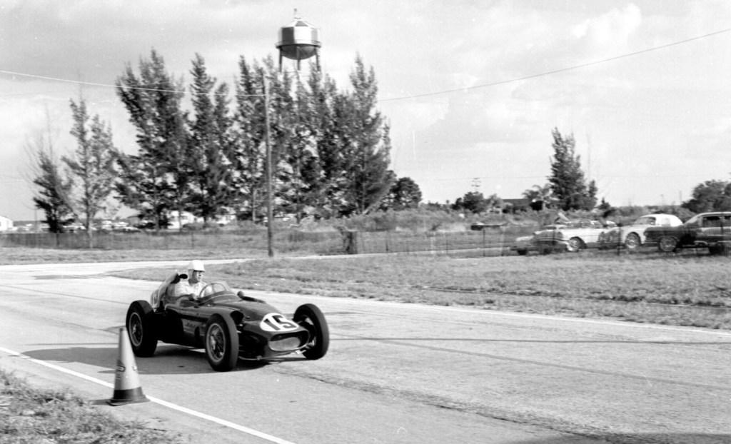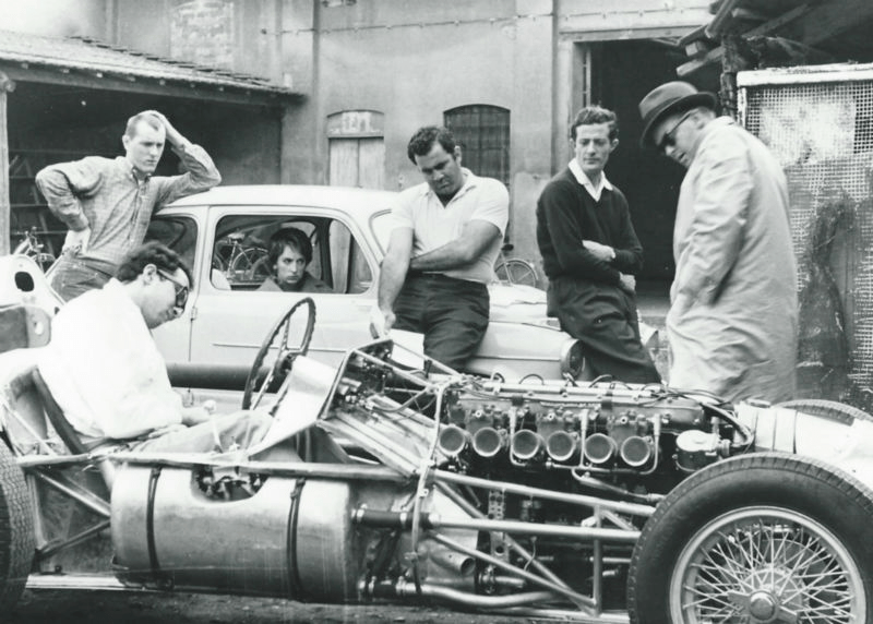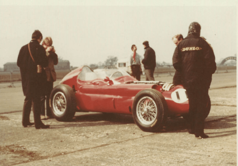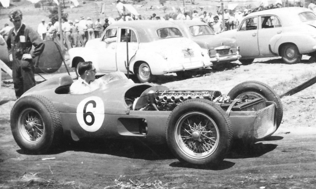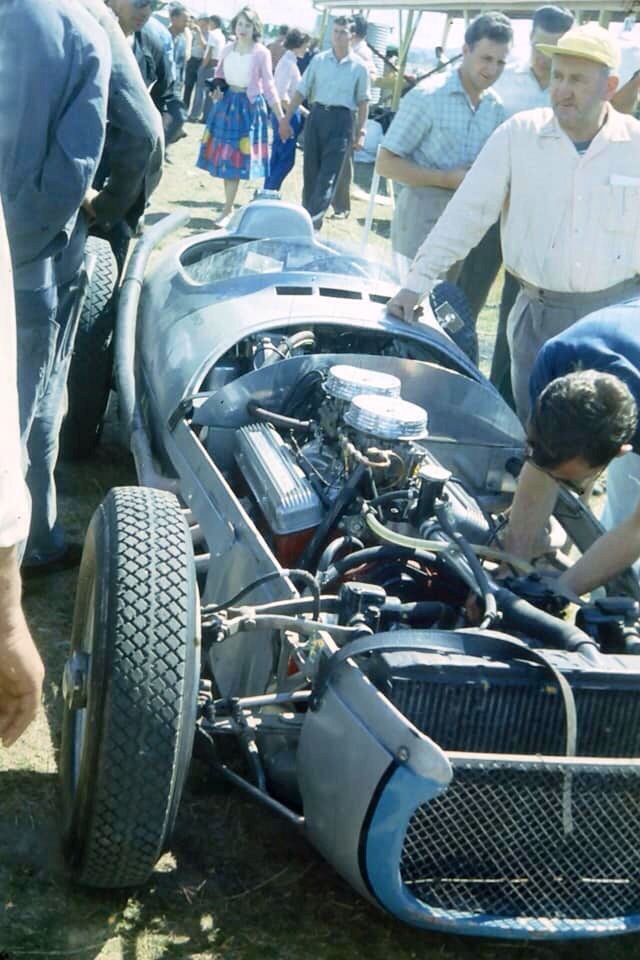 That’s Len Lukey congratulating him below, #5 is Len’s Cooper T45 Climax 2-litre, the 250F on the far side is Glass’s. Love the proboscis…