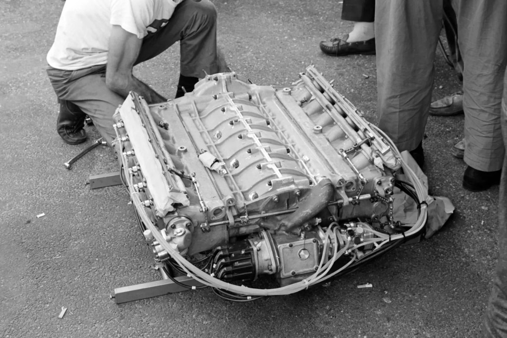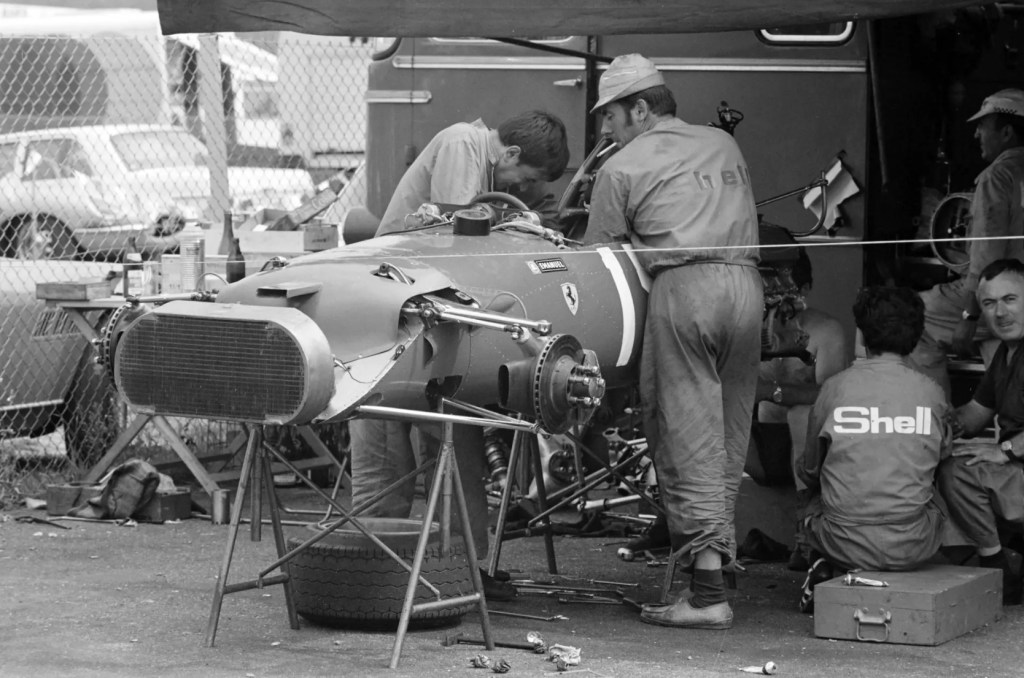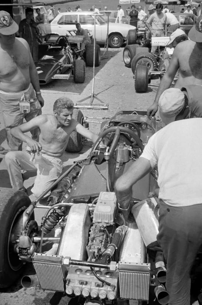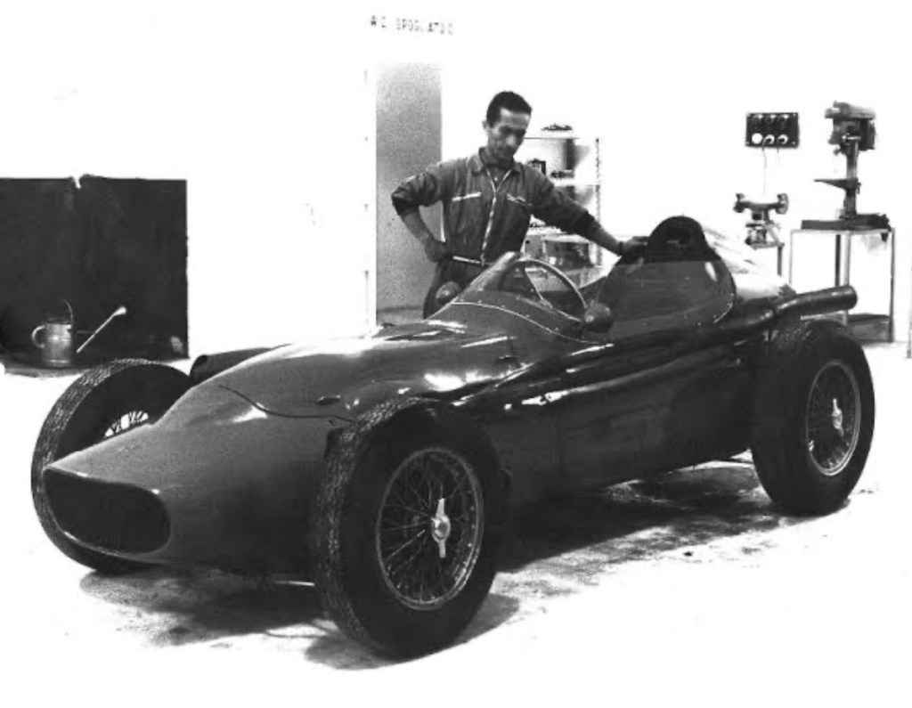 That’s Len Lukey congratulating him below, #5 is Len’s Cooper T45 Climax 2-litre, the 250F on the far side is Glass’s. Love the proboscis…