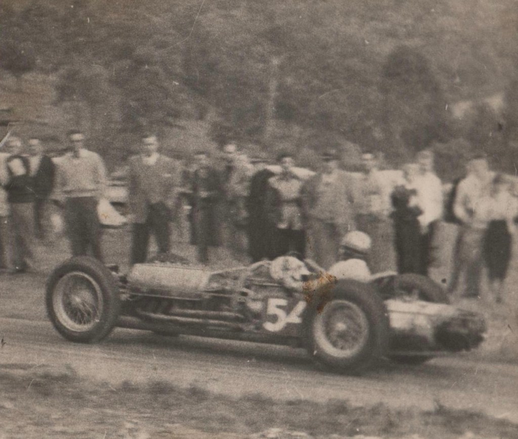 Jack Brabham contests a race at the short lived Altona circuit, to Melbourne’s west in March 1954, Cooper T23 Bristol. See here for details on the circuit and Jack’s visit there: https://primotipo.com/2016/06/24/jacks-altona-grand-prix-and-cooper-t23-bristol/