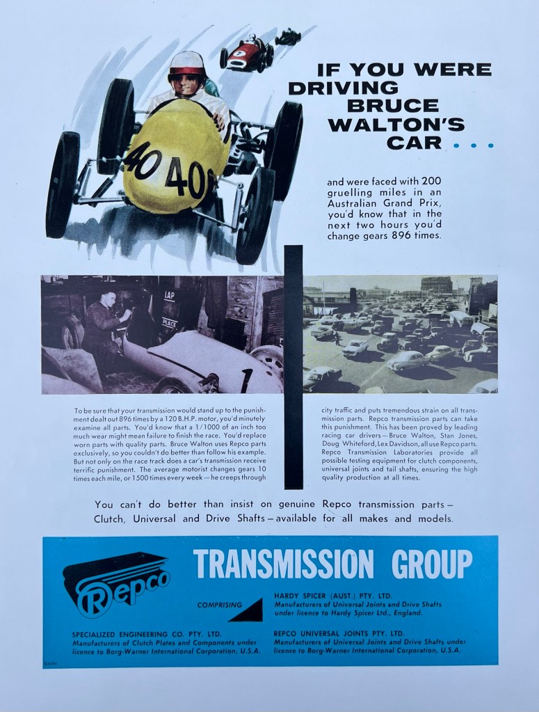 It was a terrific win by the visiting Kiwi, all of our Top-Guns were there but Ross beat the lot: Stan Jones, Arnold Glass, Len Lukey, Alec Mildren, Doug Whiteford and others. He was as sharp-as-a-tack having raced for the works-Lister Jaguar team in Europe in 1958 upon the recommendation of Archie Scott Brown who had raced his works-lister in New Zealand in the Summer of ’58 and was impressed by what he saw.
