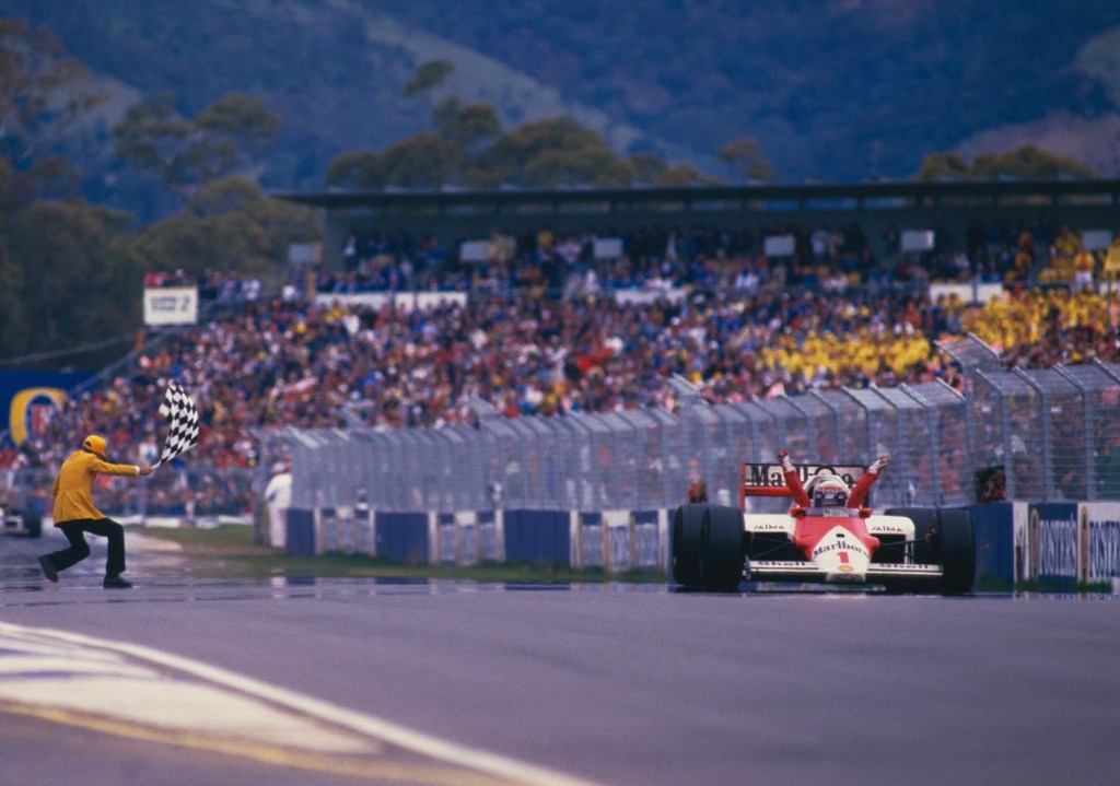 Poor old Nigel had his 180mph Williams FW11 Honda 1.5 V6 tyre blowout, so his teammate Piquet was brought in for a precautionary tyre change and Alain’s McLaren MP4/2C TAG-Porsche 1.5 V6 won the race…and the title(s) in a thriller-diller of a race: Drivers and Constructors.