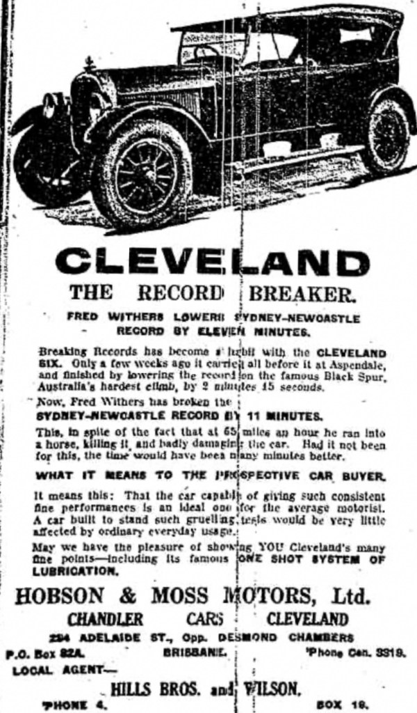 Withers raced the Cleveland Six at Penrith and Maroubra Speedways in New South Wales/Sydney and at Aspendale, outside Melbourne in the 1920s. He was also a record-breaker of some repute using Cleveland and Essex products.