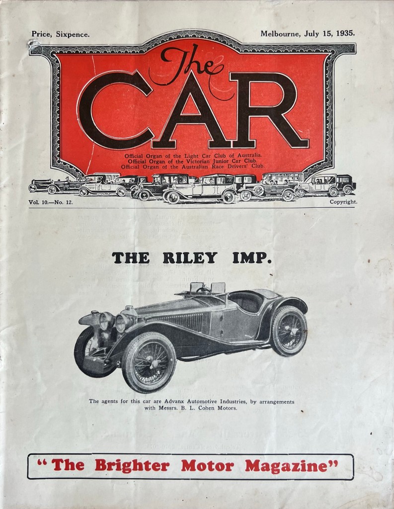 The car on the right is another ex-Riley team car which is said to have been a spare for the 1934 Ulster Tourist Trophy. BL Cohen Pty Ltd imported it in 1934, Bill Williamson raced it for them. The Head brothers later owned and raced it, fitting a 12/4 race engine.”