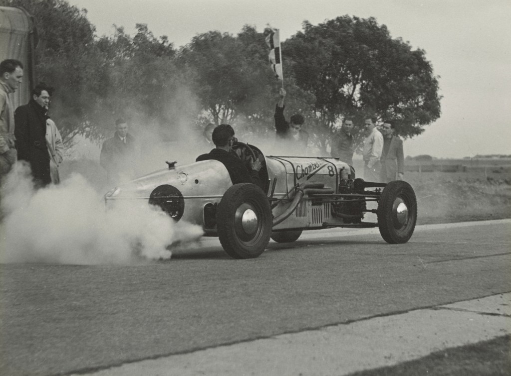 Peeling out during a run at the Vintage Sports Car Club speed trials on June 16, 1947.