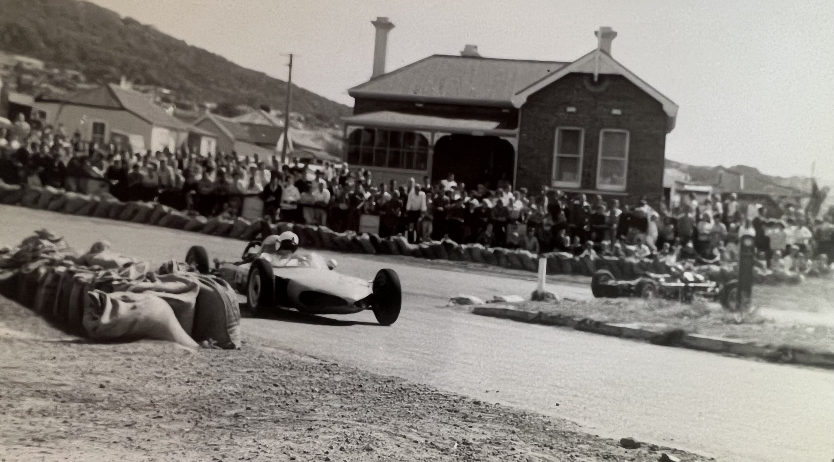 The battle was resolved in Stan’s favour, here Alan Jones and blonde haired John Sawyer enjoy the moment with Stan. Jones had just enough power to offset the handling and roadholding advantage of Lukey’s new fangled mid-engined Cooper. Armed with a 2.5-litre FPF – not readily available to customers at that time – the result wouldn’t have been the same, but karma looked after Stan that day, he had well-and-truly paid his AGP dues after all! More about Stan here: https://primotipo.com/2014/12/26/stan-jones-australian-and-new-zealand-grand-prix-and-gold-star-winner/