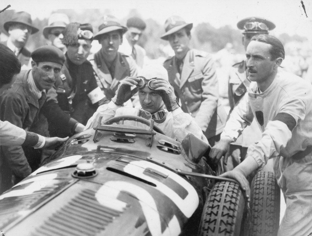 Antonio Brivio after winning the 1935 Targa Florio in a Scuderia Ferrari Alfa Romeo Tipo B.
