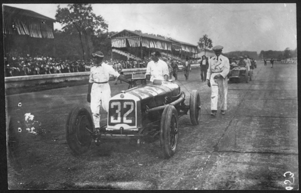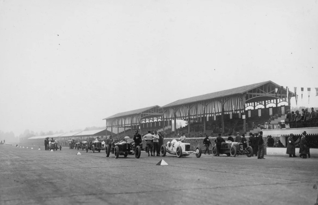 Before the start of the race: Antonio Ascari’s Alfa P2 #1 Christian Werner’s Mercedes M72 #2 and Jules Goux’ Rolland-Pilain Schmid #3.