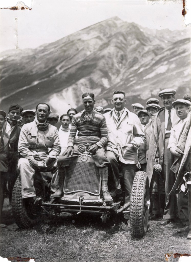 The Pirellis are Stella Bianca’s, the venue is Cuneo-Colle della Maddalena. While Pirelli wrote that Tazio was first and Luigi third, Rudy Caracciola won the day on a Mercedes.