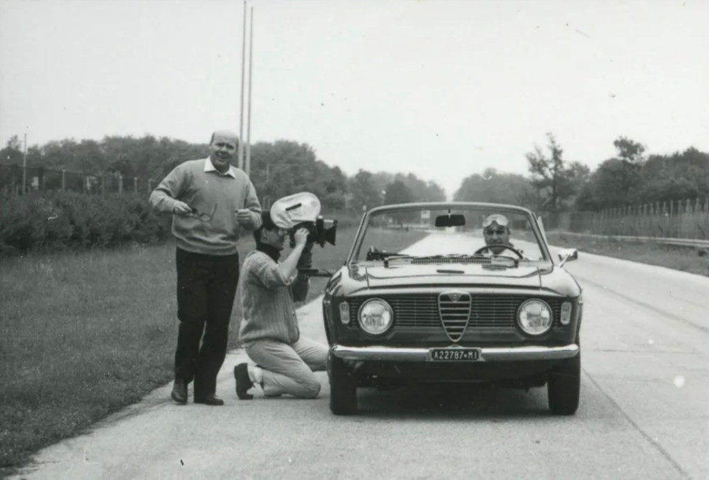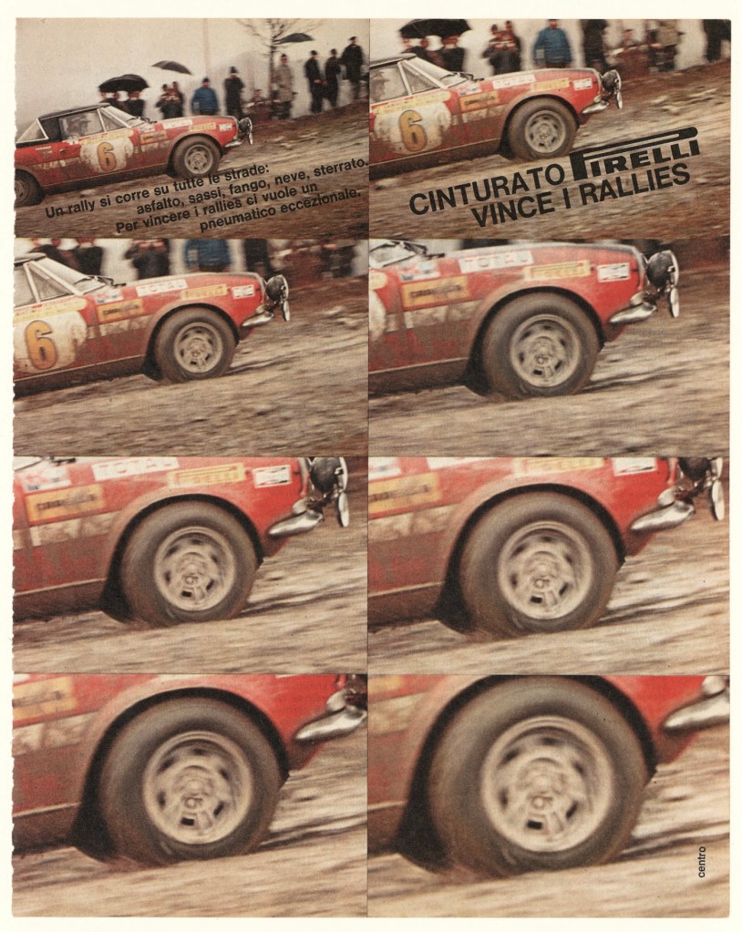 “During his career his name appeared a number of times next to that of Pirelli: it happened again in 1965, and once again there was a camera there to record it. This was a spot produced for Carosello TV commercials with reportage by Ugo Mulas.”