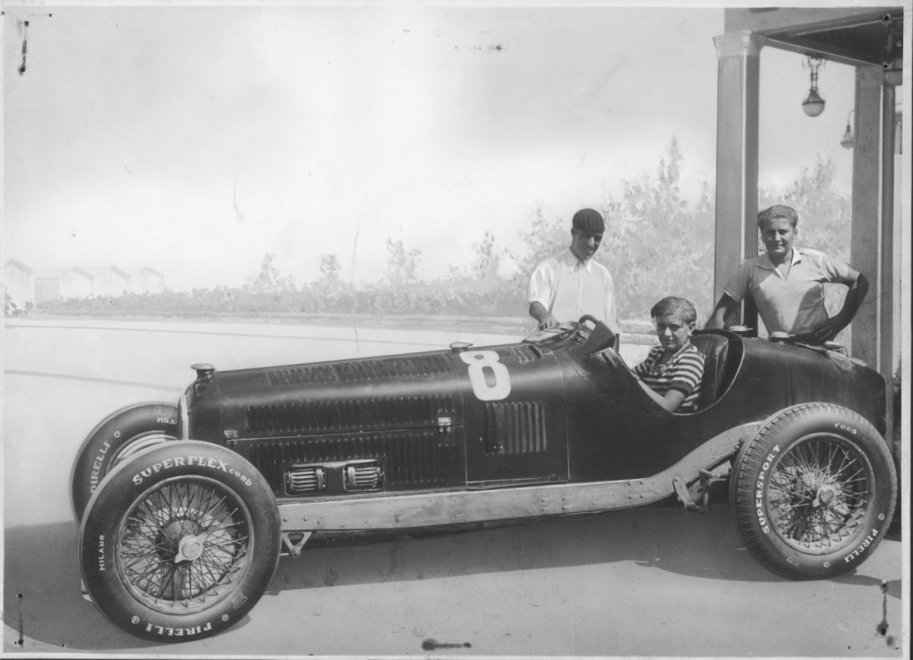 Meanwhile poor old Tazio is tasked with amusing Ill Duce’s sons in his P3, Bruno in the driving seat and Vittorio behind.