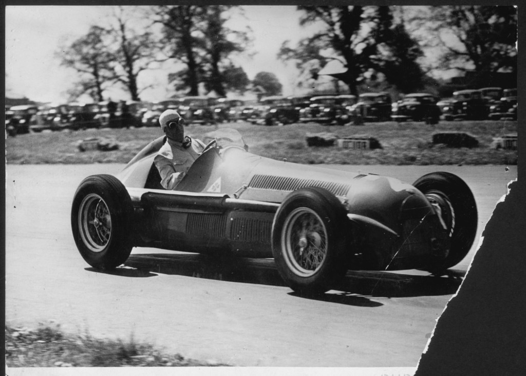 Classic shot of Nino Farina on the way to winning the July 1950 British Grand Prix in an Alfa 158.