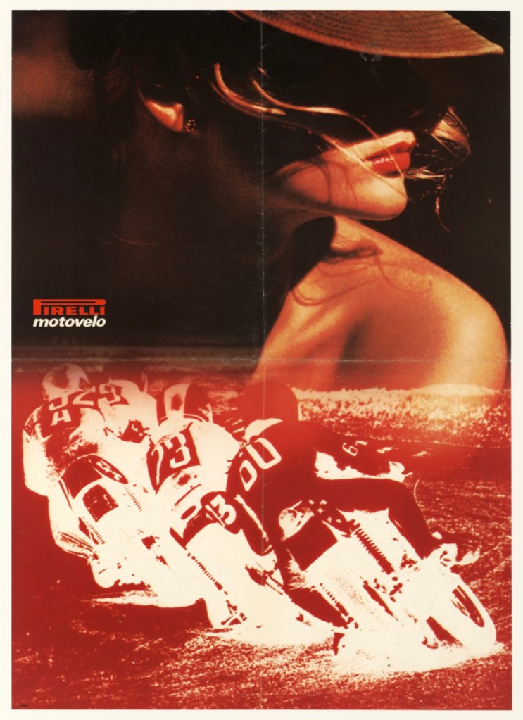 So, then yer go digging on that internet thingy and find Pirelli’s archives, these shots are the amazing result. I’ve mixed them up, they aren’t placed in chronological order so I’ve visually separated them by choosing Pirelli magazine covers or impactful or clever advertisements so you know when we are onto another subject. I’ve kept the words to a minimum, let the pics do the talkin’…