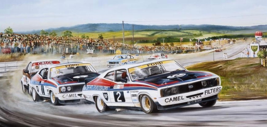 As I got the hang of the working world a bit I developed a keen appreciation of Moff’s commercial skills in addition to his on-track prowess. He was very young when Ford US did a deal with him to run their surplus-to-requirements Lotus Cortinas in 1967. After his works-Ford Oz drives – 1969-73 plus bits and pieces subsequently – came to an end he did deals with Mazda, Holden, Porsche Cars Australia and others that kept him winning and in the public eye.