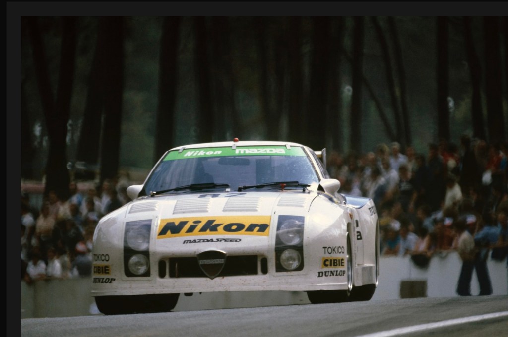 The century old, Hiroshima based multinational rewarded Moffat’s success with his final drive at Le Mans in 1982. He shared a Mazda RX-7 254i GTX IMSA class machine (above) to 14th place sharing the drive with Japanese racers, Yojiro Terada and Takashi Yorino.