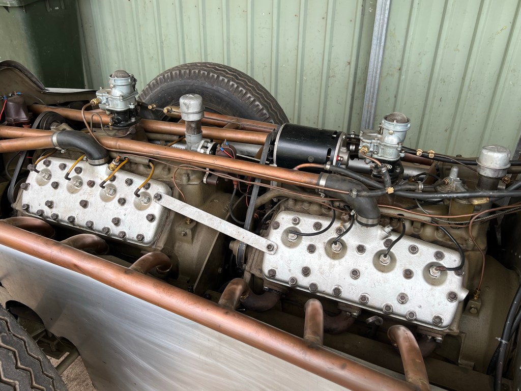 The key elements of this car comprise a WW2 Dodge Scout car chassis, two Ford Mercury 3.8-litre 110bhp V8s mounted one aft of the other, and a Ford truck four-speed gearbox feeding a Dodge rear axle and diff. Yep, they are truck wheel, tyres and brakes, and yes again, it’s quite a thrill to ride in it!